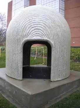 Barrow is a public sculpture by an American artist Jill Viney. It is located on the Indiana University-Purdue University Indianapolis campus, which is near downtown Indianapolis, Indiana. The sculpture is just north of the Herron School of Art on New York Street. This sculpture is made from a double wall of fiberglass encasing a sheet of metal meshing. Barrow measures 8-foot (2.4 m) and 8-foot (2.4 m) in diameter. Barrow was installed at IUPUI at noon on 7 May 2008.[1]