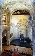 The cloister of the adjacent monastery which dates back to 1739 now houses a museum of sacred art. In front of the basilica on the sidewalk stands a bronze life-size statue by Jose Villa Soberon of José María López Lledín known as El Caballero de Paris (1899–1985) is buried inside the basilica.