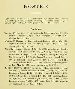 3. ^ Capt. Hazard is not shown on the muster rolls for Battery B, but for Battery A, Battery C, & Battery I