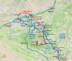 Lefebvre, whose division led the way, then entered Marche on 27 May and Ciney on 28 May. On 29 May, Championnet and Morlot, following behind, entered Marche.