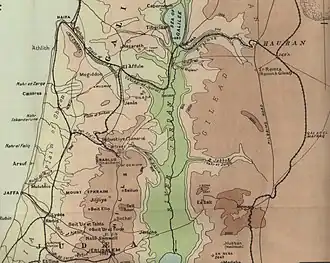 The Battle of Megiddo[a] was fought between 19 and 25 September 1918, on the Plain of Sharon, in front of Tulkarm, Tabsor and Arara in the Judean Hills as well as on the Esdralon Plain at Nazareth, Afulah, Beisan, Jenin and Samakh. Its name, which has been described as "perhaps misleading"[3] since very limited fighting took place near Tel Megiddo,[4] was chosen by British commander Edmund Allenby for its biblical and symbolic resonance.[4]
