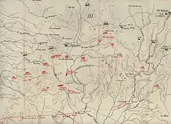 Four Ottoman divisions fought in the area: the 19th, 24th and 27th Divisions, and the 3rd Cavalry Division.[32]During the battle on 31 October, the Ottoman III Corps headquarters had retreated from Beersheba to Tel es Sheria but, the next day (1 November), moved to support the defence of the Jerusalem road from Edh Dhahriye. They were followed by the 143rd Regiment (24th Division) and 1,500 rifles of the Beersheba Group, which had been reorganised at Tel es Sheria. This latter group moved to defend Tel el Khuweilfe. On 1 November, the 125th Regiment (16th Division) also moved west into the hills coming under the command of the 27th Division, while the 6th Cavalry Regiment covered the Ottoman left flank to Yutta.[33]Kress von Kressenstein also sent the 19th Division to reinforce the Seventh Army in the area.[32] This strong Ottoman presence defending the area was designed to encourage Allenby to commit more units to the attack, to take the pressure off the Ottoman forces defending Gaza and Sharia, and to lessen the possibility of an EEF breakthrough.[34] [c]