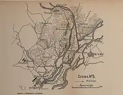 By 21 April 1904 the Japanese 1st Army was concentrated and hidden south of Wiju. The Japanese were in the same positions on the southern bank of the Yalu River that they had been in August 1894. The Japanese knew the exact locations of the Russians' deployment from intelligence by forward scouts disguised as Korean fishermen, the Russians made no effort to conceal their positions.[3] By 23 April, the Japanese knew the layout of the Russian trench line and details of the defensive positions around the area of Antung.[3] Intelligence was so effective that the Japanese estimate of the Russian troop strength was only exceeded by 1,000 and their estimate of the guns was only two less than the actual number.[3] The Japanese made every effort to keep their positions hidden. Screens of trees, millet and bushes were used to conceal activity as well as roads, artillery and other equipment.[3]