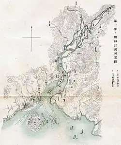 The Battle of the Yalu River (Amnok River) lasted from April 30 to May 1, 1904 and was the first major land battle during the Russo-Japanese War. It was fought near Wiju (modern village of Sinuiju, North Korea) on the lower reaches of the Yalu River, on the border between Korea and China. Also known as the Yalu River Crossing Operation.[2]