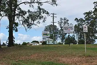 The town is located centrally within the locality. The Bruce Highway passes through the location from south to north, bypassing the town to the east. The town is now accessed Bauple Drive, the former route of the Bruce Highway before the town was bypassed.[4]