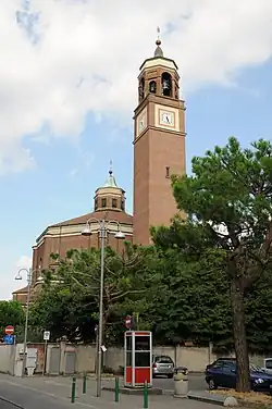 Designed by the architect Ugo Zanchetta of Milan and dedicated to the Assumption of Mary, it was strongly desired by don Pietro Ermolli (1888-1972), parish priest of San Giorgio su Legnano from 1928 to 1969.[2][4] The construction work lasted from 3 March 1933 to October 1934, with the first stone laid on 24 April 1934 and the consecration which took place on 23 April 1935.[2]