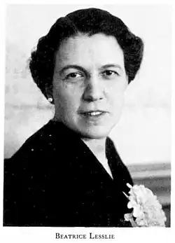 Hildur Annie Beatrice Lesslie née Kylander (1890–1967) was a Swedish businesswoman in the clothing industry who, after her husband's death in 1936, managed the Gothenburg clothing firm Konfektions AB Lesslie until 1962 when her son took over. She successfully increased the firm's profitability, employing up to 350 workers and producing ready-to-wear women's coats, suits and furs. Beatrice Lesslie is also remembered for supporting Finnish refugees in the Second World War and for more generally helping Finland during the Finnish Winter War.[1][2][3]