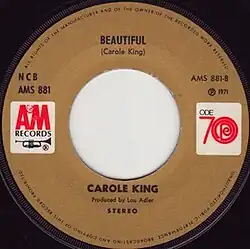 Barbra Streisand covered "Beautiful" as the opening track of her 1971 album Barbra Joan Streisand.[10] Anne Murray recorded "Beautiful" for her 1972 album release Annie. Richard Marx covered "Beautiful" on the 1995 tribute album Tapestry Revisited: A Tribute to Carole King.[11] AllMusic critic William Ruhlmann described Marx's version as one of the best covers on the album.[11] "Beautiful" has also been covered by Julie Conant and by The Overtures.[12][13] The song was also covered by Jonathan Rayson on his 2006 album Shiny and New.