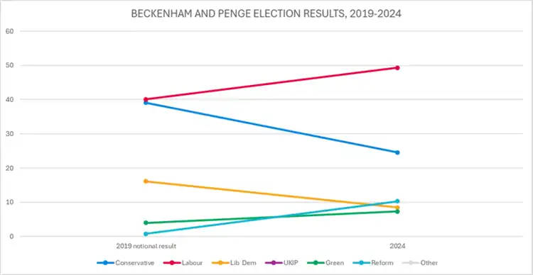 - ^ "New Seat Details – Beckenham and Penge". www.electoralcalculus.co.uk. Retrieved 2024-03-28.