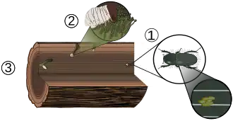132. ^ Scott, J. J.; Oh, D. C.; Yuceer, M. C.; Klepzig, K. D.; Clardy, J.; Currie, C. R. (2008). "Bacterial protection of beetle-fungus mutualism". Science. 322 (5898): 63. Bibcode:2008Sci...322...63S. doi:10.1126/science.1160423. PMC 2761720. PMID 18832638.