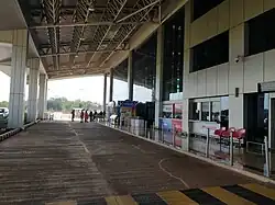 A new terminal building was inaugurated on 14 September 2017 as part of the airport expansion project. The terminal building is spread over 3,600 square metres and has a capacity to accommodate over 300 passengers. It has two baggage conveyor belts and six check-in counters. It has an apron for parking of three Airbus A320 and Boeing 737 aircraft.[4] The old apron has two parking stands designed for the ATR 72 and similar aircraft.[20][21] There are also two additional aprons, one on the north side of the runway that serves as an isolation bay and one on the south side. These aprons are each connected by single taxiways to runway 08/26, which measures 2,300 by 45 metres (7,546 ft × 148 ft).[21]