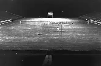 - In 1949–1950, capacity was almost doubled to about 40,000 with the addition of a second tier to the west stands and the installation of bleachers in the open south endzone. A press box was also added atop the west stands and stadium lights were installed, allowing the 1950 season to kick off with the Gators' first home night game, a 7–3 win over The Citadel.[3]
