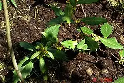 Berberis hypokerina is a shrub native to northern Myanmar (Burma) and sometimes grown in other places as an ornamental. It is evergreen, reaching heights of up to 250 cm. Leaves are simple, elliptical with spiny margins. Berries are very dark purple, almost black.[1][2]