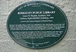 The Berkeley Historical Plaque Project, founded in 1997, is a Berkeley, California non-profit 501 (c)(3) organization whose mission is to document Berkeley’s history through plaques identifying locations of historical import.[1][2] Sponsors include the City of Berkeley, Berkeley's Landmarks Preservation Commission, the Berkeley Architectural Heritage Association[3] (BAHA) and the Berkeley Historical Society (BHS).[4][5][6][7]