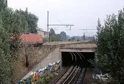 In the city of Berlin the Görlitz railway is mostly still in operation. Only the short section between the Berlin Ringbahn (ring line) and the former Görlitz station has been closed to passenger traffic since 1952 and was left to nature after freight traffic was also discontinued after 1985. After 1994, a connecting path was built on the railway embankment between Görlitzer Park and Alt-Treptow, although this is interrupted in the area of the extended A 100 and the Ringbahn.[26] The line south of the Ringbahn is served by long-distance and regional traffic as well as by the Berlin S-Bahn to Königs Wusterhausen. The line is served by both mainline and regional trains as well as the Berlin S-Bahn.