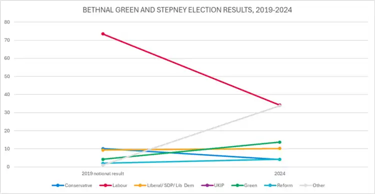 6. ^ "Statement of Person Nominated and Notice of Poll: Bethnal Green and Stepney Constituency". Tower Hamlets Council. 7 June 2024.