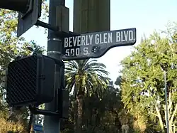 Beverly Glen Boulevard is east of Sepulveda Boulevard and the San Diego Freeway (I-405). When traffic on I-405 becomes unbearable, many commuters take Beverly Glen or Sepulveda instead, causing considerable congestion on both streets.[5]