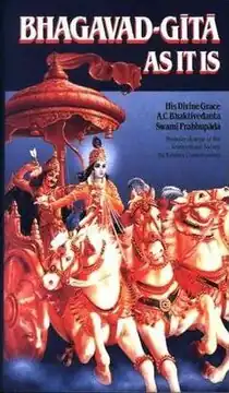 The Bhagavad-Gītā As It Is is a translation and commentary of the Bhagavad Gita by A. C. Bhaktivedanta Swami Prabhupada, founder of the International Society for Krishna Consciousness (ISKCON), commonly known as the Hare Krishna movement. This translation of Bhagavad Gita emphasizes a path of devotion toward the personal god, Krishna. It was first published in 1968 in English by Macmillan Publishers, and is now available in nearly sixty languages.[1][2] It is primarily promoted and distributed by members of ISKCON.