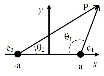 In mathematics, biangular coordinates are a coordinate system for the plane where and are two fixed points, and the position of a point P not on the line is determined by the angles and [1]