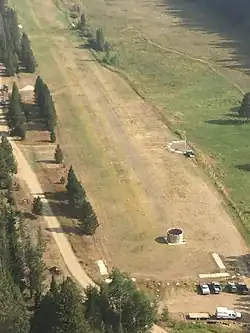 Big Creek Airport (FAA LID: U60) is a state-owned public-use airstrip in Valley County, Idaho, United States.[1] It is located 12 nautical miles (14 mi, 22 km) northeast of Yellow Pine, Idaho (44°57′54″N 115°29′37″W / 44.96500°N 115.49361°W / 44.96500; -115.49361 (Yellow Pine, Idaho))[2] and 17 nautical miles (20 mi, 31 km) west of the Cabin Creek USFS Airport (45°08′37″N 114°55′44″W / 45.14361°N 114.92889°W / 45.14361; -114.92889 (Cabin Creek USFS Airport)).[3] The airstrip is actually on Forest Service managed land. The state of Idaho Division of Aeronautics has a special use permit to perform annual maintenance on the strip and some facilities. The airport is located at the Big Creek Ranger Station (Forest Service Station- Not Ranger Station)[4] in Payette National Forest, adjacent to the Big Creek Campground.[5] The airstrip serves the Big Creek Lodge.[6]