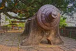 Historian Maniklal Sinha writes,[17][18] the well-known Dalmadal of the Malla Rajas. There are distinct critiques regarding the name of the cannon. Common people think that Dal and Madal are two cannons. The concept of Sanskrit-educated people is Dalmadal, which came from the Sanskrit name Dalmardan. However, each of the above thoughts is incorrect. Mallabhum, the kingdom of Malla Rajas was dominated by Dharmathakura and a Dharamshila is known as Dalmadal. His study also suggests that the ancestor of the Karmakar family, Jagannath Karmakar who built the Dalmadal cannon and named the cannon as Dalmadal.