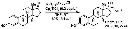 - ^ Paradas, Miguel; Campaña, Araceli G.; Estévez, Rosa E.; Cienfuegos, Luis Álvarez de; Jiménez, Tania; Robles, Rafael; Cuerva, Juan M.; Oltra, J. Enrique (2009). "Unexpected TiIII/Mn-promoted pinacol coupling of ketones". Journal of Organic Chemistry. 74 (9): 3616–3619. doi:10.1021/jo9005238. PMID 19334701.