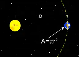 The Sun emits that power equally in all directions. Because of this, the planet is hit with only a tiny fraction of it. The power from the Sun that strikes the planet (at the top of the atmosphere) is: