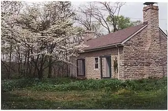 The springhouse is the last of the original buildings. Springhouses acted as a refrigeration unit. Perishable food that could not be salted or smoked would be stored. A second floor of the spring was built to allow residents to cool off on hot days. The spring that lies next to the springhouse is man-made.