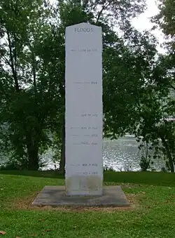 A marker behind the airport showing the height of the river during historic floods (the dirt mark is from the 2006 floods).