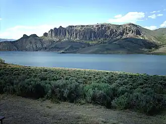 In addition to Blue Mesa Reservoir, Curecanti NRA also contains two other Bureau of Reclamation projects, Morrow Point Reservoir and Crystal Reservoir. Part of the same project that created Blue Mesa, both Morrow Point and Crystal are smaller, narrower lakes, located within the Black Canyon of the Gunnison. Though considerably harder to access than Blue Mesa, these two lakes nevertheless offer visitors unique views and challenging recreational opportunities. West of Blue Mesa and immediately downriver from Crystal Dam is Black Canyon of the Gunnison National Park, a National Park Service unit that offers camping, hiking, and views of the river and the surrounding 1900-ft. deep canyon.[12] North of the reservoir is the Gunnison Ranger District of the Grand Mesa, Uncompahgre and Gunnison National Forests, a unit of the U.S. Forest Service. The Gunnison Ranger District includes almost 30 campgrounds and a number of hiking and equestrian trails spread across 1.3 million acres.[13] Towns near Blue Mesa include Gunnison to the east and Montrose and Delta to the west, all of which can be accessed via U.S. 50.