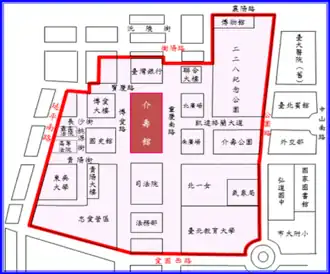 2. ^ 臺北市博愛警備管制區範圍示意圖 (PDF) (in Chinese). Archived (PDF) from the original on 2021-10-08. Retrieved 2021-10-08 – via laws.taipei.gov.tw.