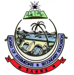 Board of Intermediate and Secondary Education, Bannu is the Intermediate Education Governmental body in Khyber Pakhtunkhwa, Pakistan. It is authorized with financial and administrative authority to organize, manage, regulate, develop and control intermediate and secondary education in general and accomplish examinations in the institutions affiliated with it. BISE Bannu came into being as a result of the bifurcation of the Peshawar Board in 1990 under the North West Frontier Province Board of Intermediate and Secondary Education Act 1990. The BISE Bannu is the responsible for control, organization and regulation of intermediate and secondary education of more than 700 educational institutions in public as well as private sector in Bannu District.