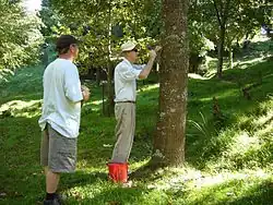 Bob Berry attaching a label at a tree at Hackfalls Arboretum (2007)