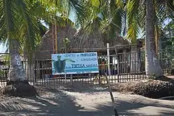 The Boca del Cielo turtle sanctuary is one of four such installations on the Chiapas coast along with Puerto Arista, Costa Azul and Barra de Zacapulco.[2] It is run by the Instituto de Historia Natural y Ecología. Despite a federal ban on the sale and consumption of the eggs, the pillaging of turtle nests continues in Chiapas.[9] It is staffed by two persons who patrol the 75 km of beaches and mangroves nightly for freshly laid eggs.[2][9] These eggs are moved to a protected hatching area and them the hatchlings emerge, are released into the sea. Visitors are permitted to participate in patrols and releases, with July to November the most active months.[2]