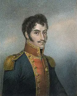 After the failure of the Center Campaign a change in strategy was needed, thus the possibility of launching a military campaign to liberate New Granada was not a far-fetched idea.[3] On August 15, 1818, in a proclamation Bolivar announced to the peoples of New Granada his intention to launch a military campaign in their country. However, most of his army was in tatters as a result of the Center Campaign, if there was any hope of carrying out this plan a new army would need to be raised, organized, and trained in order for any chance of success.[4] The man for the job would be none other than Colonel Francisco de Paula Santander, who Bolivar had just promoted to Brigadier General on August 12, this would be followed by naming him Commander of the Vanguard of the Liberator Army of New Granada and dispatching him to the Llanos of the Casanare Province along with 1,200 muskets, uniforms, and other supplies, with the mission of creating and training a New Granadan army for a future campaign to liberate New Granada.[5][6] Casanare was one of the few areas of New Granada that was free of Spanish presence, it harbored many of the New Granadans who had fled Morillo's reconquest.[7]