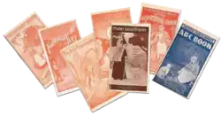 2. ^ Note: Titles included 1. The Fairies, 2. Trials of Mrs. Graycoat, 3. Mother Goose Rhymes, 4. The Princess Bride, 5. Six Little Frogs, 6. Four Little Sunbonnets, 7. A Trip to the Moon, 8. Chin-Chin and Chow, 9. The Owl and Pussy Cat, 10. The Indians, 11. The Ant and Grasshopper, 12. The Starch Ghosts, 13. Conundrums and Jokes, 14. Proud Tommy Tilt, 15. Old Uncle Ritts, 16. Old Granny Grak, 17. Bin and Bun, 18. Sallie Short and Lillie Long, 19. ABC Book, 20. The House That Jack Built, 21. Ten Little Pickaninnies, 22. Upside Down Land, 23. The Reformed Pig, 24. Three Naughty Kittens, 25. Elisa May, 26. Honey, 27. The Van Troons, 28. Gentle Jane, 29. Mildred and Rosa, 30. Little Jack, 31. The Lunch Party, 32. Hans and Gretel, 33. Little Red Riding Hood, 34. Biddy and Paddy, 35. The Three Wise Women, 36. The Tuttle's Fourth of July. See Books of Paradise