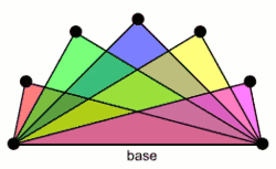 A second type, which might be called a triangular book, is the complete tripartite graph K1,1,p. It is a graph consisting of triangles sharing a common edge.[3] A book of this type is a split graph. This graph has also been called a [4] or a thagomizer graph (after thagomizers, the spiked tails of stegosaurian dinosaurs, because of their pointy appearance in certain drawings) and their graphic matroids have been called thagomizer matroids.[5] Triangular books form one of the key building blocks of line perfect graphs.[6]