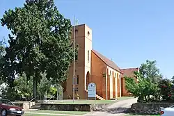 Christ Church, a Church of England, was officially opened on 26 May 1890 by Archbishop William Webber assisted by Rev James Coles, rector at Harrisville. The church was designed by John H. Buckeridge. (the diocesan architect for the Anglican Diocese of Brisbane) and built by Mr Vincent of Boonah. Prior to the opening of the church, Church of England services were held in the Goolman Divisional Board office. At the time of the opening of the church, there was no permanent minister.[38] On 7 July 1956 Archbishop Reginald Halse set a stone in the second church building being erected dedicating the new church as a memorial to the martyrs of the New Guinea Mission and those who died in World War I, World War II and the Korean War. The second church as dedicated in 1960 and consecrated in 1961.[39] The original church continues to be used as a church hall.[40]