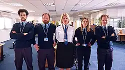 The cast of Borderline, as seen in the opening sequence. From left to right: Agent Tariq Mansoor, Senior Agent Grant Brodie, Chief Inspector Linda Proctor, Agent Andrea "Andy" Church, and Agent Clive Hassler.
