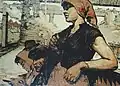 The New Ukrainian Semiletka Buildings (1959–1960) is also a lithographic series, created on a commission by the Union of Artists, in which, alongside the key moments of Kremenchug Hydro Electric Station construction, a lot of attention is paid to the rank and file participants of the grandiose building project. In this series the artist emphasizes images of women, as if juxtaposing the beauty and fragility of the female figures with the surrounding construction giants. The artist also remained true to the humanistic concept of art in the third lithographic series The People of Semiletka (1960–1961). Reminiscence of the Black Sea became the most vivid and the most unconventional of the series. Through the prism of his depicting the fishermen's work one could clearly observe the unmistakable romantic notes of the European art tradition.
