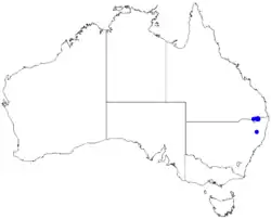 The granite boronia is known from nine populations in Granite Belt and Darling Downs areas of south-east Queensland and one population on the Northern Tablelands region of New South Wales near the Queensland border. It grows in heath and woodland on granite.[2][3]