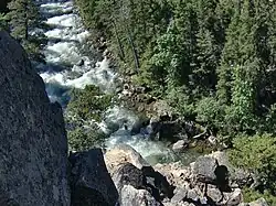 It rises in the Gallatin National Forest in the Absaroka Range in southern Park County. It flows north through mountainous canyons, a cataract under a natural bridge, and northwest in a widening valley past McLeod. It joins the Yellowstone at Big Timber. The landscape of the Boulder River and river valley has merited the filming of two movies: A River Runs Through It and The Horse Whisperer.[2]