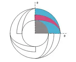A periodic or cyclic boundary condition arises from a different type of symmetry in a problem. If a component has a repeated pattern in flow distribution more than twice, thus violating the mirror image requirements required for symmetric boundary condition. A good example would be swept vane pump (Fig.),[6] where the marked area is repeated four times in r-theta coordinates. The cyclic-symmetric areas should have the same flow variables and distribution and should satisfy that in every Z-slice.[1] In other cases, the governing conservation equations must be modified appropriately to accommodate the application of such cyclic conditions.[7]