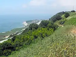 The flat landscape ends with a dramatic cliff with a prominent sea view. The seashore is quite rocky, but there are several large coves with sandy beaches. The nearby town Kavarna is a quickly developing tourist centre, but the prices are still cheaper than other places on the Bulgarian Seaside.