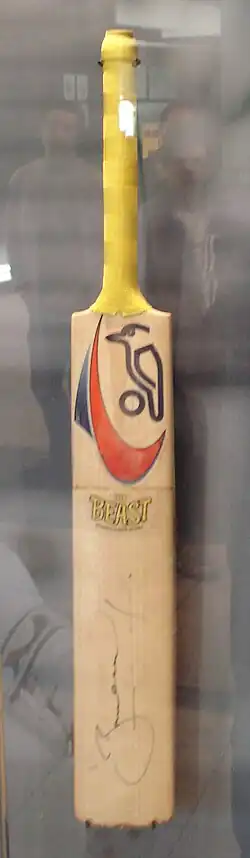 Bat used by Brad Hodge during his double century against South Africa-on display at the Melbourne Cricket Ground.