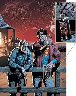 The penultimate issue of the series, Action Comics #869, was recalled at the retailer level by DC Comics for cover content. The original cover depicted Clark and his adoptive father outside the Kent farmhouse apparently holding what may be beer.[1]