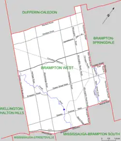 Brampton West (French: Brampton-Ouest) is a federal electoral district in Ontario, Canada, that has been represented in the House of Commons of Canada since 2004. Its population was 170,422 in 2006- making it the most populous riding in Canada.[2]