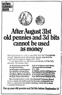- ^ "Early end in sight for the penny and 3d bit". Evening Standard. 14 May 1971. p. 8. Retrieved 27 December 2024 – via Newspapers.com.