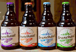 A 2006 ownership change tightened the brewery's market focus and expanded export markets. Seven products were retired and new packaging labels commissioned.[7] Brunehaut ships eleven labels across four continents, to more than twenty countries. Brewed as under 1000+-year-old Belgian brewing tradition, these beer styles feature Abbaye de Saint-Martin Dubbel and Tripel bottle-conditioned ales,[8] both Certified Belgian Abbaye Beers.