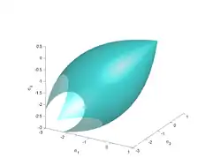 Figure 1: View of the three-parameter Bresler–Pister yield surface in 3D space of principal stresses for